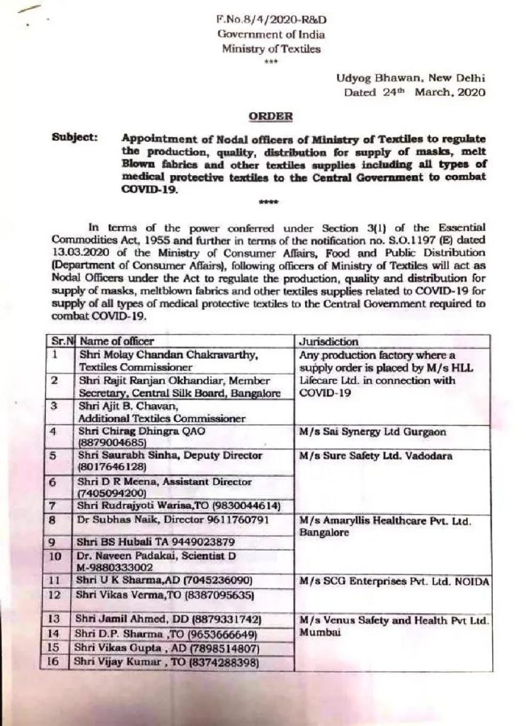 কেন্দ্র-রাজ্য সরকারকে সেফটি গিয়ার সরবরাহের অন্যতম মুখ্যসংস্থা HLL লাইফ কেয়ার ( স্বাস্থ্য মন্ত্রকের অধীনস্থ সরকারী সংস্থা) তাদের Website এ upload করে সেই টেন্ডারের বিবরণ। চূড়ান্ত টেন্ডার তালিকায় দেখা যাচ্ছে , সরকারের প্রয়োজন