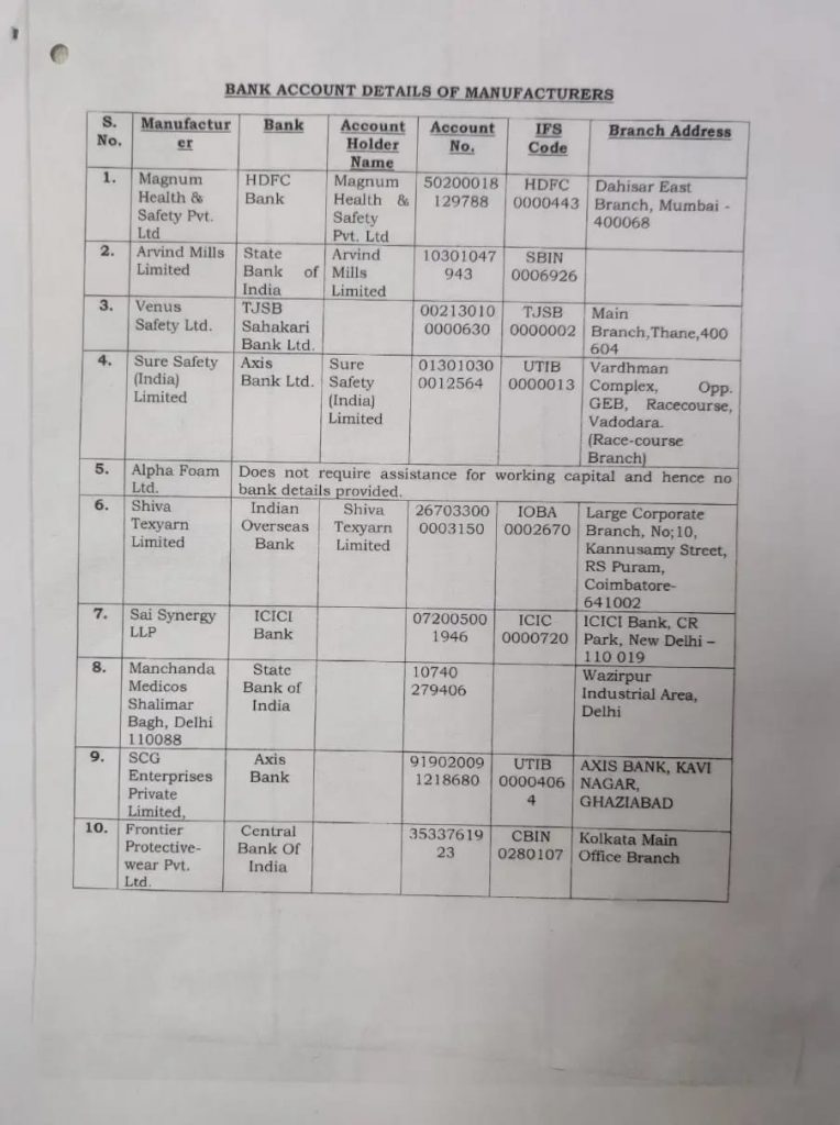 কেন্দ্র-রাজ্য সরকারকে সেফটি গিয়ার সরবরাহের অন্যতম মুখ্যসংস্থা HLL লাইফ কেয়ার ( স্বাস্থ্য মন্ত্রকের অধীনস্থ সরকারী সংস্থা) তাদের ওয়েবসাইটে এ আপলোড করে সেই টেন্ডারের বিবরণ। চূড়ান্ত টেন্ডার তালিকায় দেখা যাচ্ছে , সরকারের প্রয়োজন