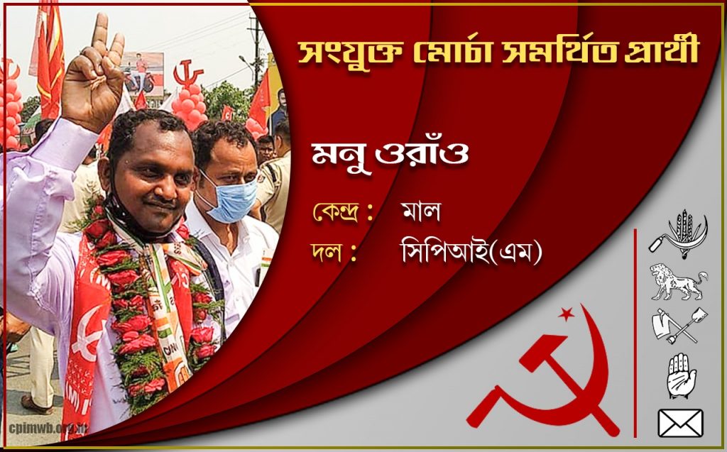 মাল বিধানসভা কেন্দ্রে সংযুক্ত মোর্চা (বাম, কংগ্রেস এবং ইন্ডিয়ান সেক্যুলার ফ্রন্ট) সমর্থিত সিপিআই(এম) প্রার্থী কমরেড মনু ওঁরাও
